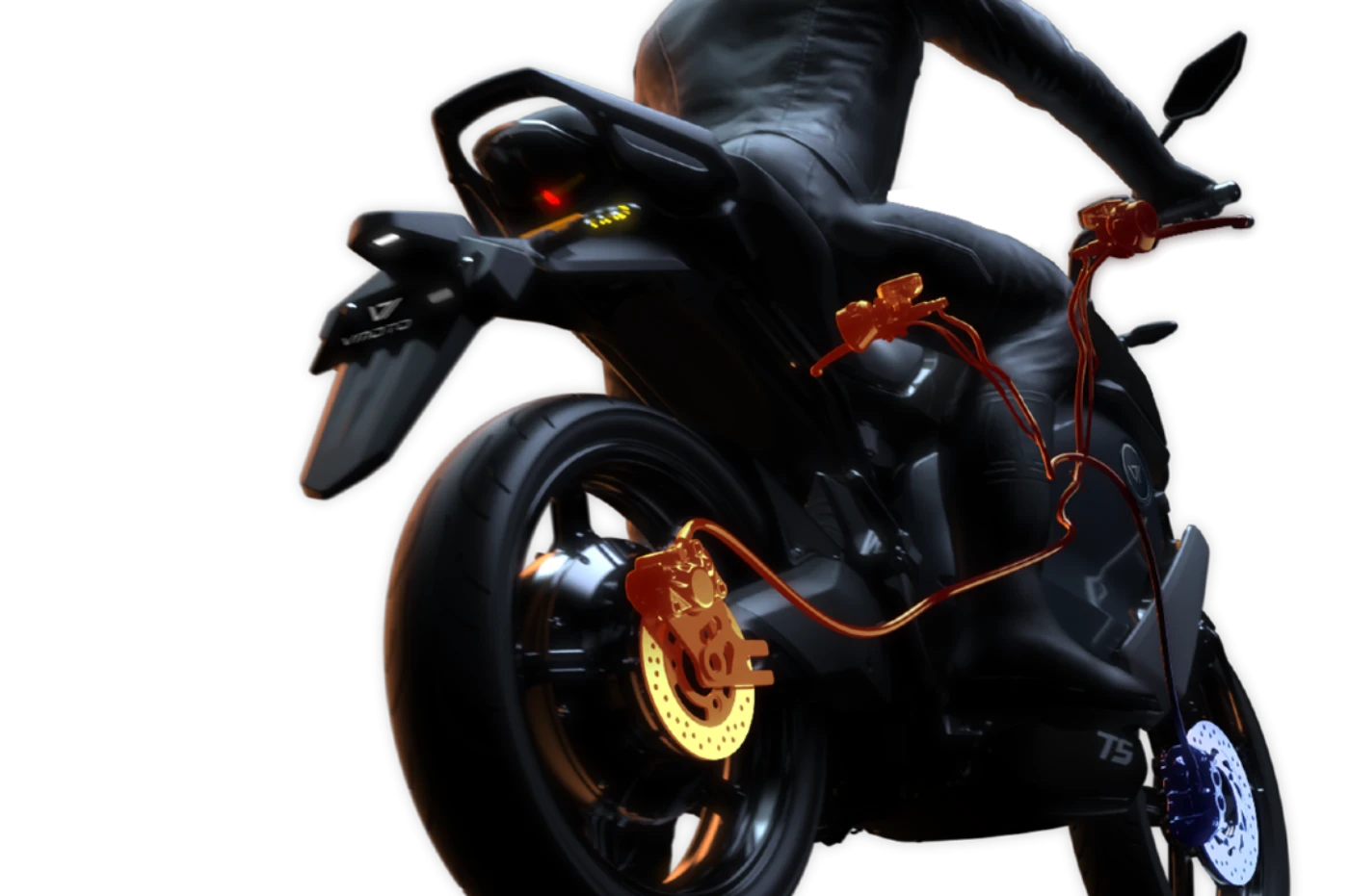 final versions and are therefore subject to significant changes at the discretion of Vmoto without notice. The photographs published in this catalog show only professional drivers in controlled road conditions. Do not try to imitate this driving behavior as it could be dangerous for you or other people on the road. This catalogue, including, but not limited to, trademarks, logos, texts, images, graphics and table of contents, constitutes the intellectual property of Vmoto, or in any case Vmoto has the right to reproduce it; Any total or partial reproduction, modification or other use of the catalog or its contents is prohibited, including publication on the Internet without the prior written consent of Vmoto. Actual battery consumption may vary based on many factors, including, but not limited to, riding style, maintenance performed, weather conditions, surface characteristics, tire pressure, load, rider weight and the passenger, the accessories. Curb weights are considered with all operating fluids, standard equipment and battery.
