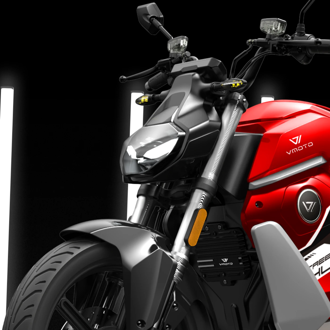 final versions and are therefore subject to significant changes at the discretion of Vmoto without notice. The photographs published in this catalog show only professional drivers in controlled road conditions. Do not try to imitate this driving behavior as it could be dangerous for you or other people on the road. This catalogue, including, but not limited to, trademarks, logos, texts, images, graphics and table of contents, constitutes the intellectual property of Vmoto, or in any case Vmoto has the right to reproduce it; Any total or partial reproduction, modification or other use of the catalog or its contents is prohibited, including publication on the Internet without the prior written consent of Vmoto. Actual battery consumption may vary based on many factors, including, but not limited to, riding style, maintenance performed, weather conditions, surface characteristics, tire pressure, load, rider weight and the passenger, the accessories. Curb weights are considered with all operating fluids, standard equipment and battery.